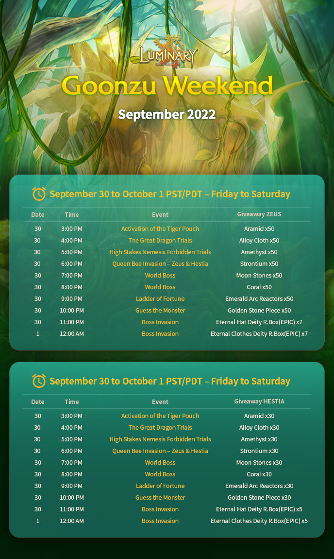 September 11 and 25, 2022 - World Boss Invasion & Queen Bee Invasion Event