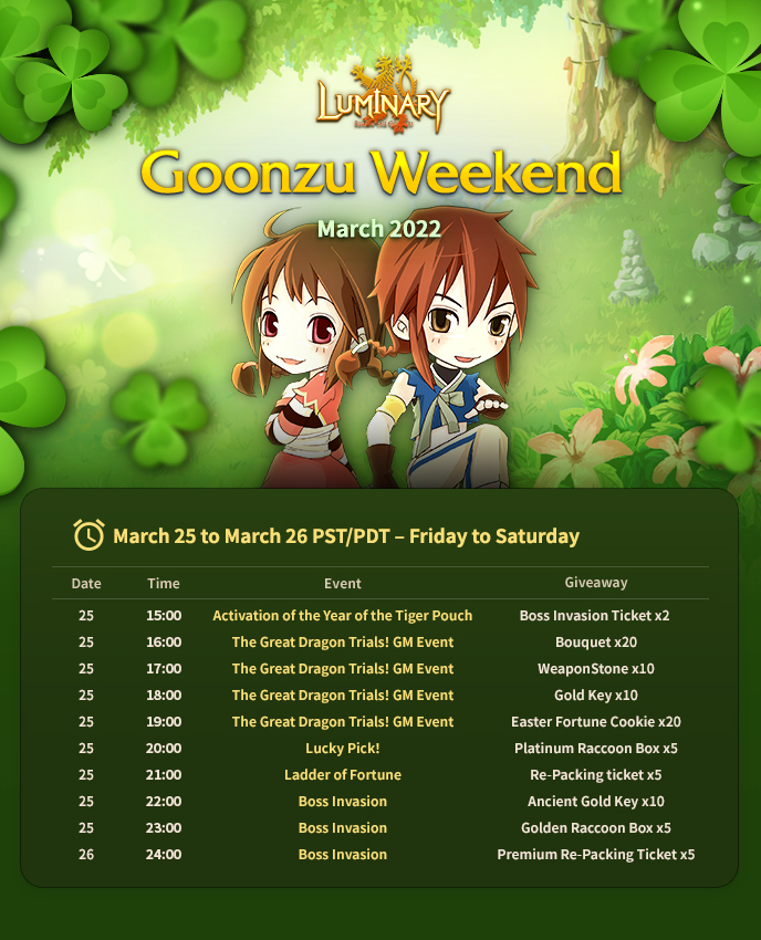 •GoonZu Weekend Event March 25 to March 26, 2022 PST/PSD (Friday to Saturday)