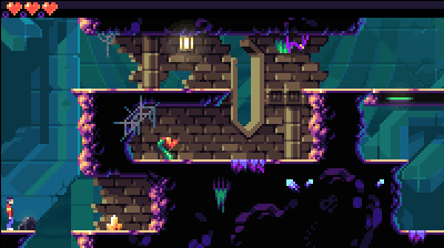So why press Up for climbing to a ledge above you, when it is technically a jump? Why didn’t I use the same button as the forward jump? Though indeed the two actions are technically jumps, they are completely different animations, unlike in a Mario or a Sonic game. This also posed some problems with level design: does the player want to jump forward or grab something overhead if the button is pressed while under a ledge (without adding yet another button)?