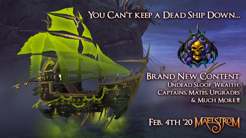 Season 2 brings all new exciting content to Maelstrom. Headlining this Season is the release of the Undead Fleet beginning with the sloop Wraith and her Captain.