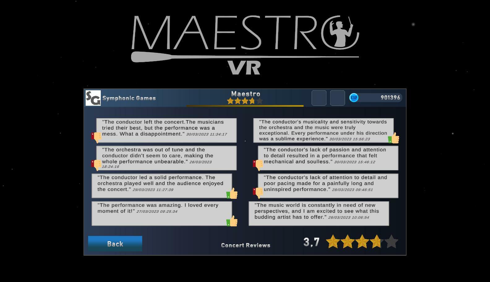 Thank you very much to everyone for your feedback during this Early Access. Your comments are essential for the continuous development of Maestro VR, so we encourage you to keep sending your impressions and suggestions to contact@maestrovr.com.