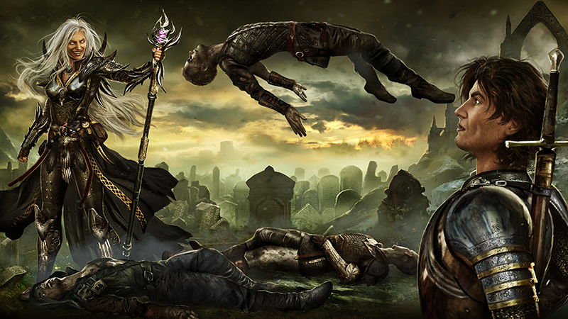 Now it's time to show off this awesome art I commissioned from Manthos Lappas (https://www.artstation.com/manth0s). This art will be the Class/Corpse Selection screen for the Mage Tower Steam game. It features our hero Gideon, as the Thought Necromancer Ventra helps him steal the thoughts and skills of a corpse before the run starts: