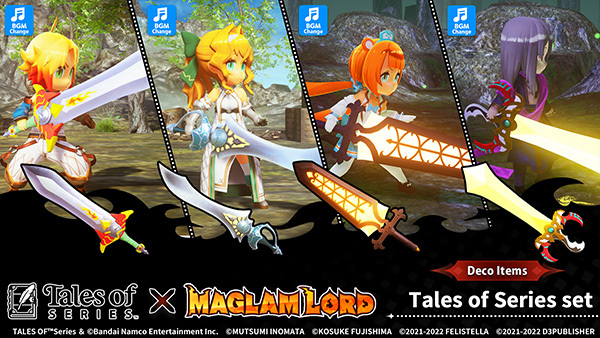 https://store.steampowered.com/app/1840720/MAGLAM_LORD__DLC/ This is a special pack that includes many items such as decor items and recovery items. It also contains four deco items from the Tales of Series collaboration! S. Dymlos , S. Chaltier , Durandal , Soma Katzburger , The Skewer , Pizza Cutter Magic Cane , Magic Umbrella , Cuddlebear Bladelord's Sword , Bladelord's Spear , Bladelord's Axe Mr. Bladelord Mark , Ms. Bladelord Mark , Darius Mark , Charme Mark , M.O.A.V. Mark , Julette Mark , Acklao Mark , Satyus Mark , Balga Mark Gold Coat , "Love" Mark Demonite Ore × 9 , Muddied Silver × 18 , Soldier's Wisdom × 18 , Earthfang × 13 , Magistone × 10 , Bladetree Leaf × 3 , Vajrastone × 10 , Brutebeast Horn × 10 , Demon Bladewine × 3 , Manaform Eye × 10 , Blood Soul × 10 , Coolant × 48 Petit Potion × 20 , Lime Potion × 10 , Light Meds × 20 , Curapple × 10 , Coolberry × 10 , Remembanana × 10 , Melticot × 10 , Green Potion × 60 , Emerald Potion × 30 , Shining Pot × 30 , Skyblue Meds × 30 , Lapis Elixir × 15 , Demovita RE × 30 , Multiplum × 60 , Hero Curry × 5 , Omega Sandwich × 5 , Cubic Sugar × 5 , Bone Ramen × 5 , Ruinous Dish × 5 , Daemonburger × 5 TALES OF™Series & ©Bandai Namco Entertainment Inc. ©MUTSUMI INOMATA ©KOSUKE FUJISHIMAhttps://store.steampowered.com/app/1840720/MAGLAM_LORD__DLC/