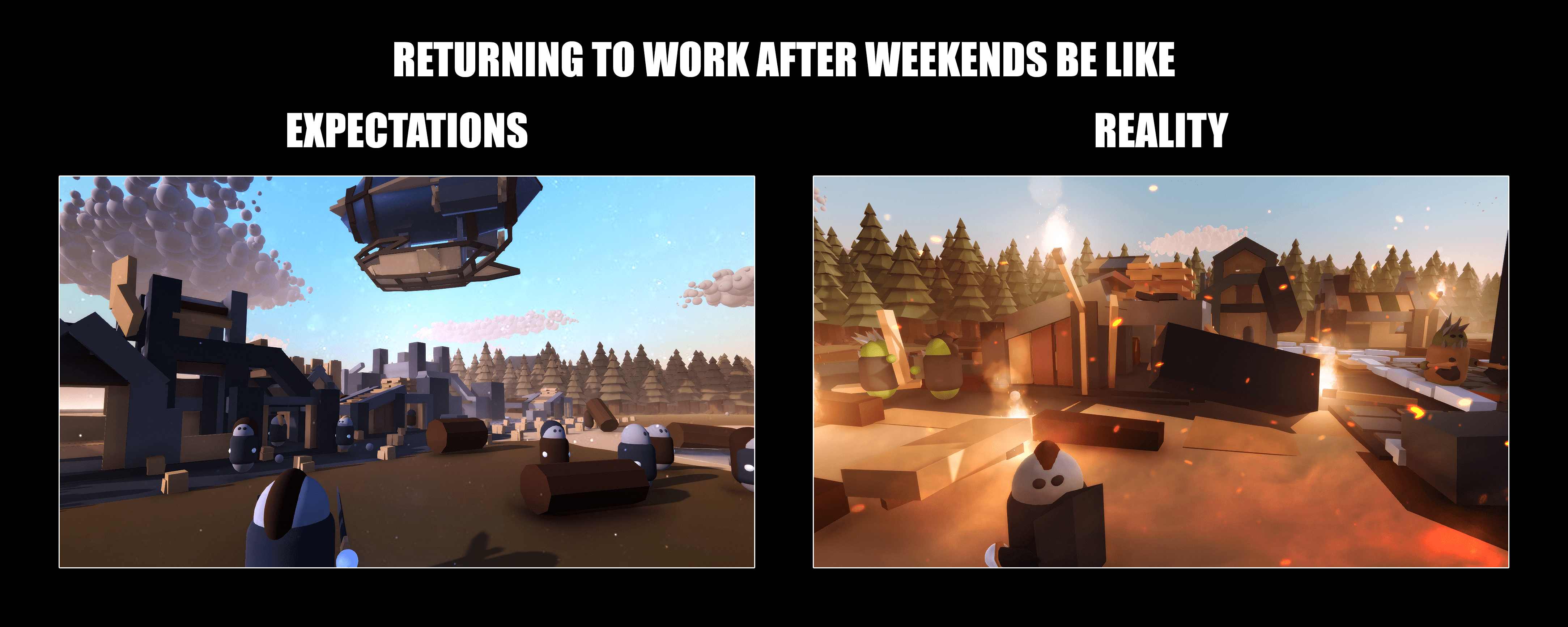 Returning to work after weekends be like: Expectations VS Reality