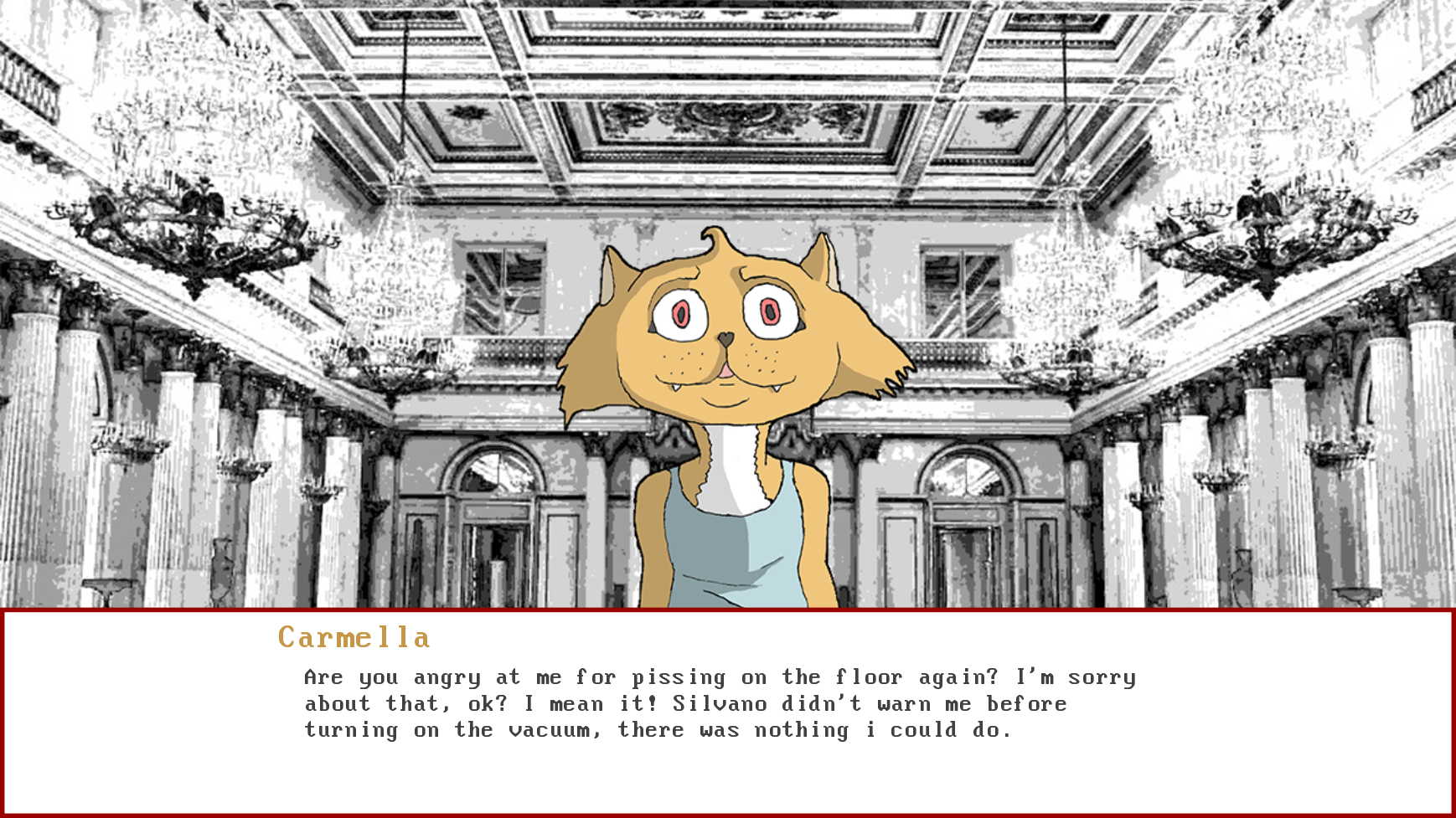 Mariuccha, which by now is the biggest tycoon the world has ever seen, just died. No one knows why or how, but her domestic cat, Carmella Gattaladra, wants to investigate.