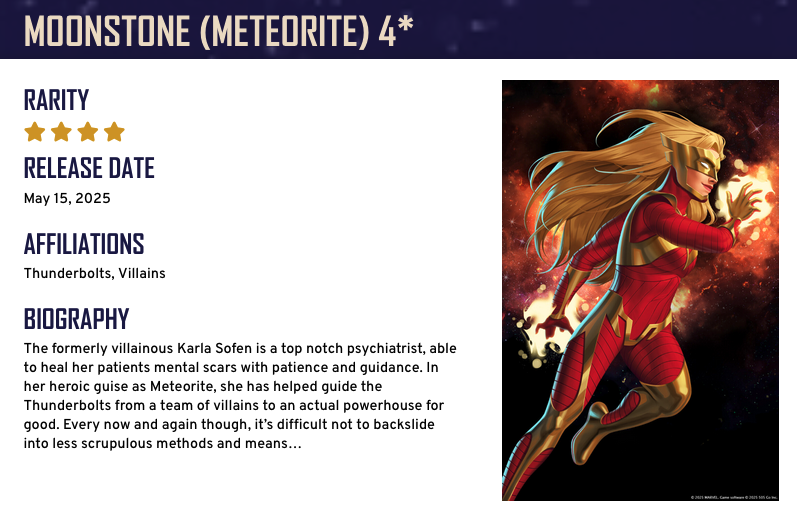 Welcome to S.H.I.E.L.D. May 18, 2025, 04:00am – May 23, 2025, 11:00pm Moonstone (Meteorite) Shards + Recruit Token for Shield Offer in Progression rewards