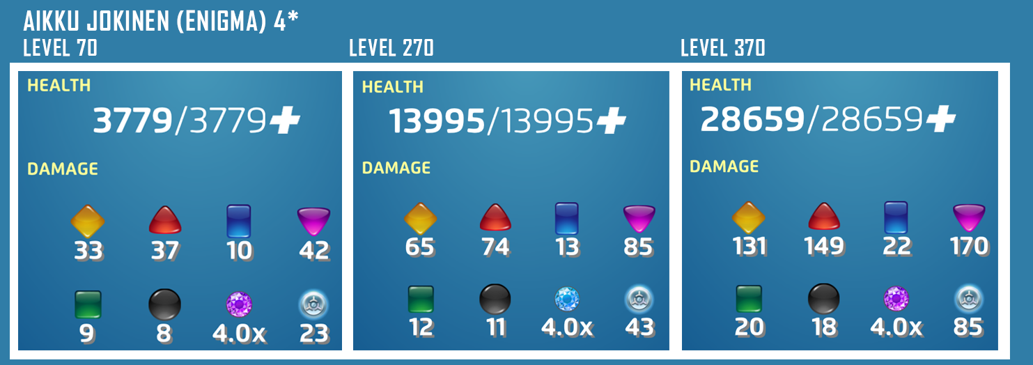 (PASSIVE) Moonstone takes 15% less damage and deals 15% more damage. If you have at least 3 more AP than the enemy, swap her Black and Yellow match damage and this becomes Play the Hero. Whenever the enemy makes a Black, Purple, or Red match, steal 1 AP of the match’s color and gain 1 Yellow AP. 270: Unchanged. 370: Unchanged.
