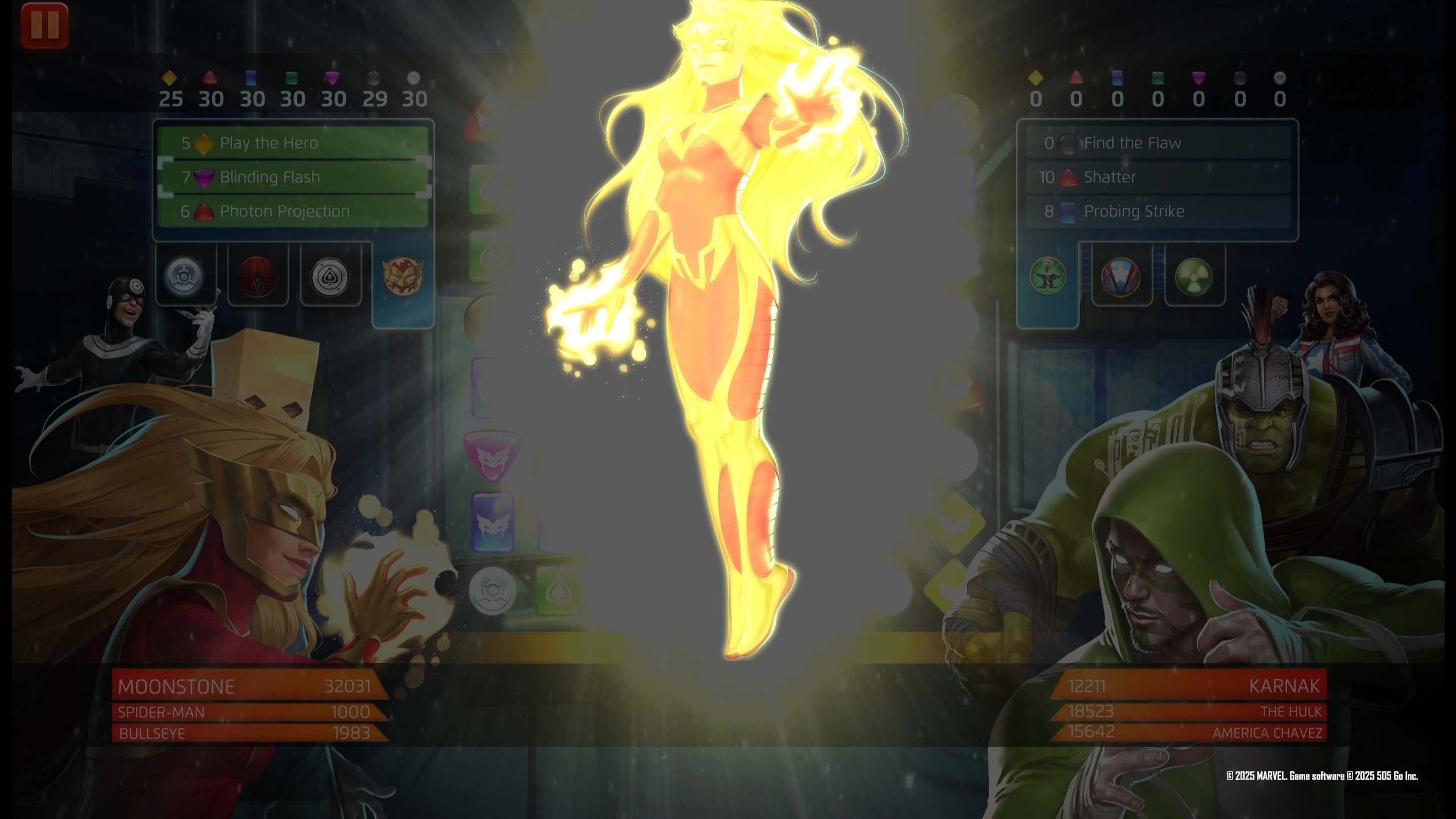 Using his experience and tactical acumen, Barnes identifies the most dangerous enemy on the field, and directs the Thunderbolts to neutralize the threat! Select an enemy as the Priority Threat, then deal a hit of 753 damage to them for each active allied Thunderbolt.
