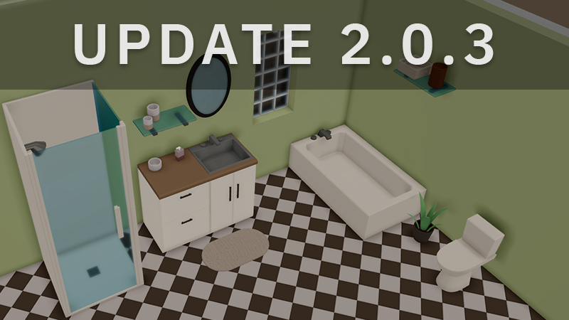 Bathroom themed objects, rugs, mirrors. [14 bricks in the Modernity collection].