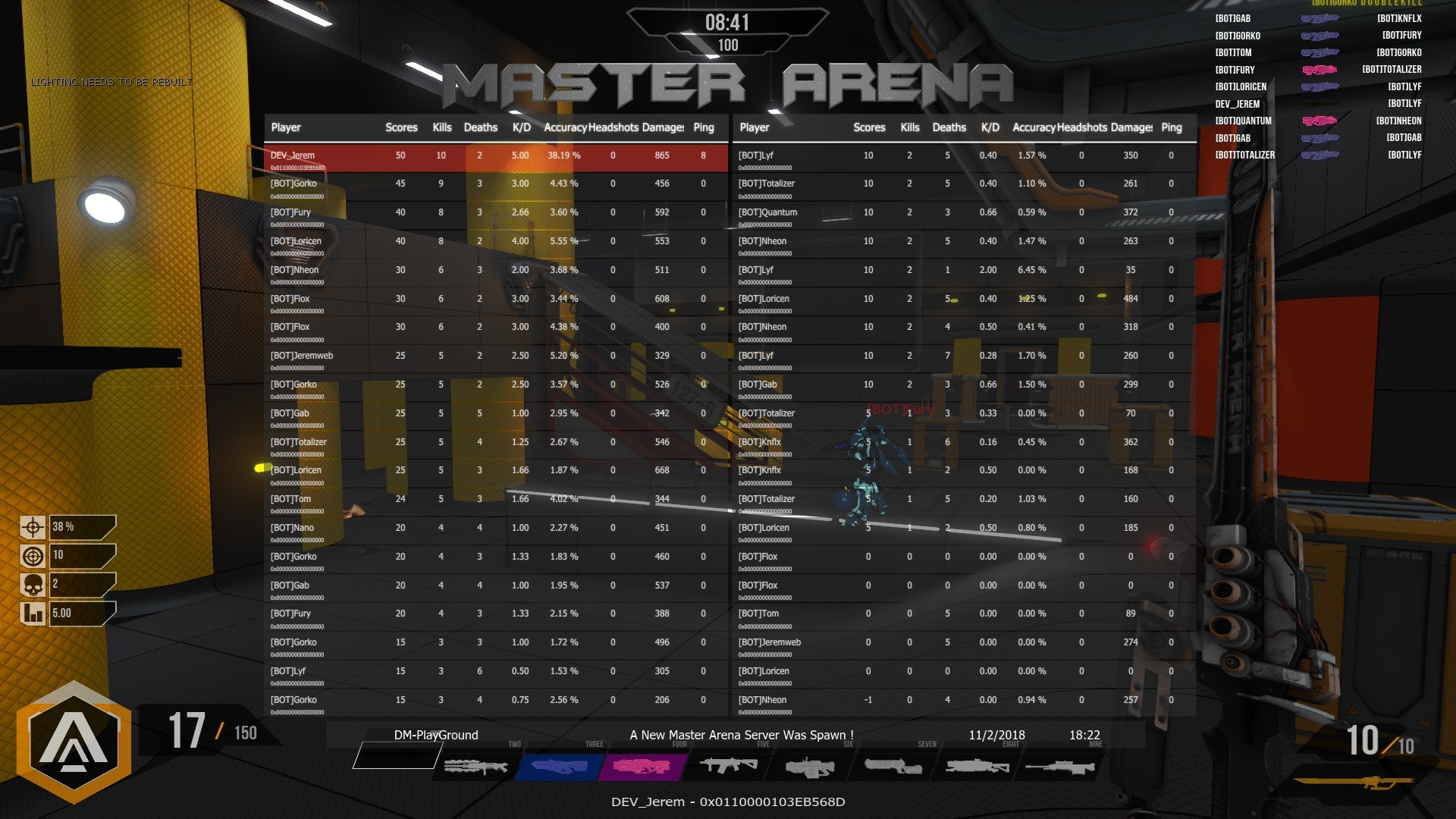 Okay, it is something simple, crazy and fun. What it is? A Large-Deathmatch mode! Yes, a 40 PLAYERS ARENA GAME TYPE! Oh great!!! When will it be available? Right now on solo/local and this Wednesday for the online playtest! We will test it on Instagib.