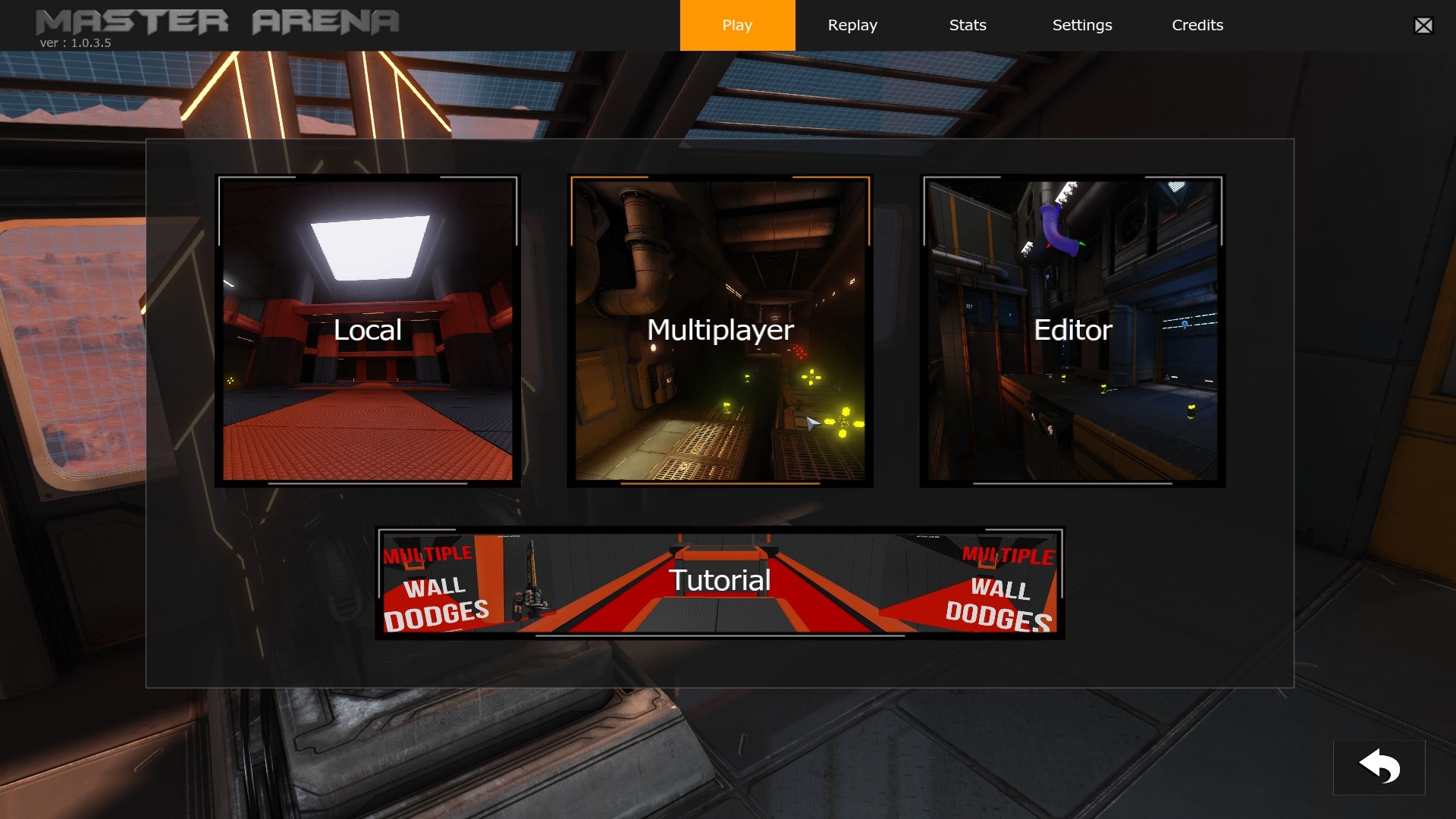 New page management: Now a simple click on “Play” opens a new page with a “Local”-”Multiplayer”-”Editor” and “Tutorial” selection