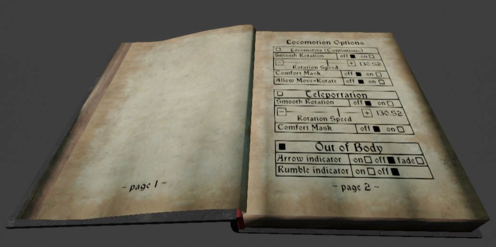 - Walls are now a collide-able object both via locomotion but also via walking with real-life head / body - These changes make falling out of the world impossible or very hard to do - if you still manage to fall out of the world, the game will reset you back up - book menu changes to make locomotion options more functional, but also more legible. - When scrolling through the backpack, rotation will now be disabled