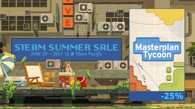 On January 15 - 28, Masterplan Tycoon will be on sale with a 30% discount! Build your own logistical network and maximize the output of your facilities in your own way!