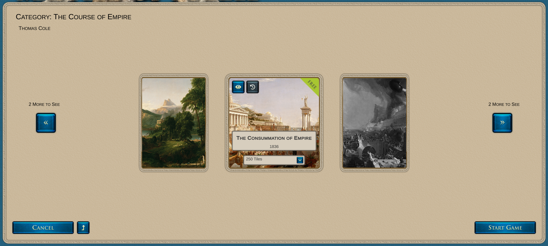 Framework: Removed the tilesets of 100 tiles from the possible options for a new game. These were only used for testing purposes and never intended to go into the final build. Note that smaller tilesets are currently considered as a future expansion for kids’ puzzles, but for the main version of the game the smallest possible puzzle tileset is of 250 tiles (we even considered 500 tiles before we finally settled on this)