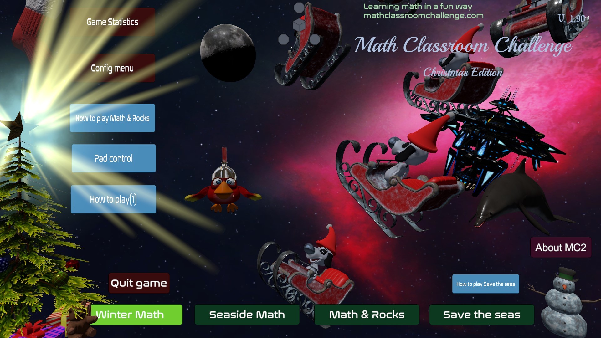 Enjoy Christmas while learning math. And don't forget the Moon and the chemical elements you'll find there, and the "Save the seas" scenario to clean plastics from the oceans. Enjoy!