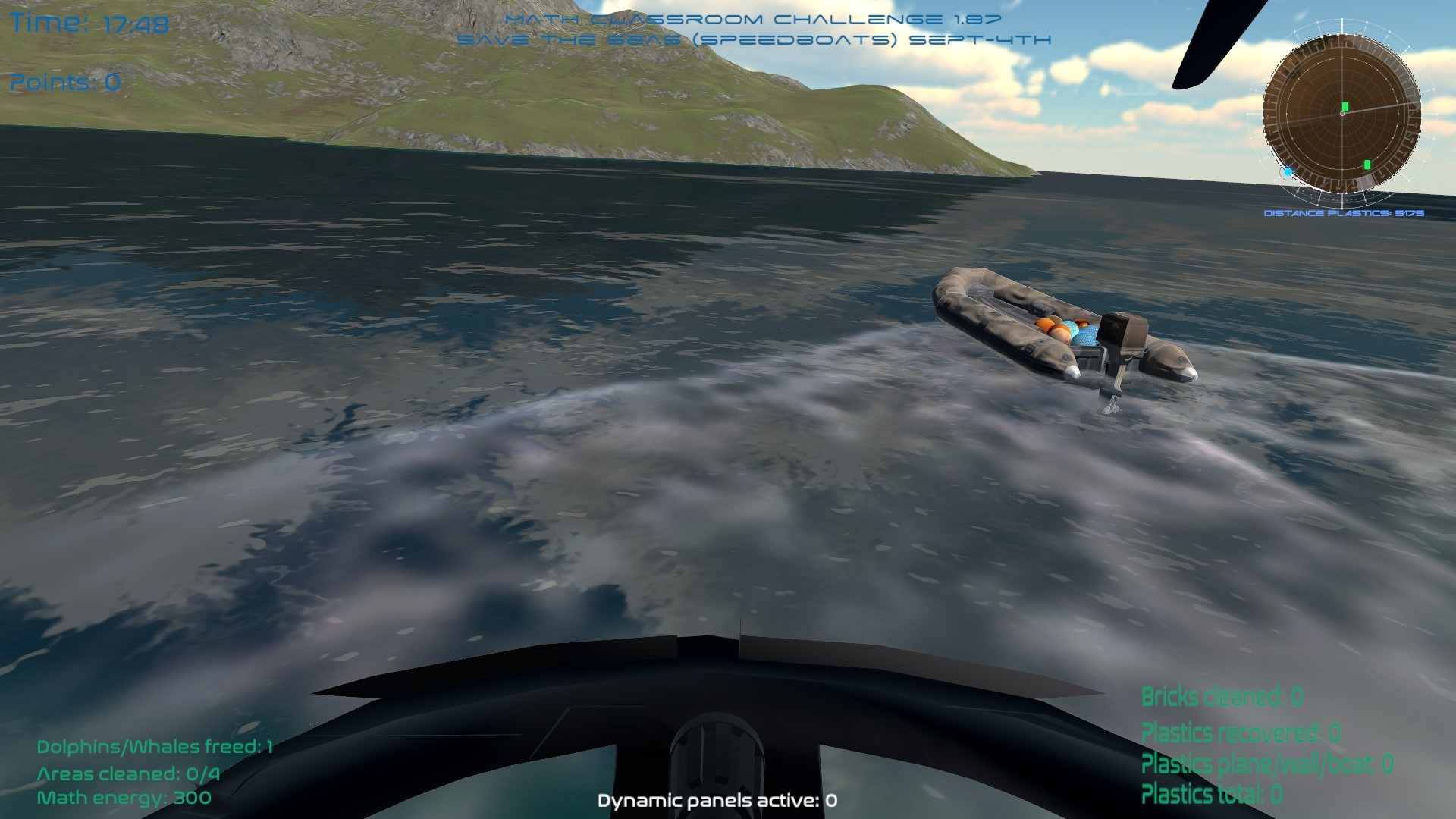 Math Classroom Challenge version 1.87 has now been released. This version, among other things, adds the “Speedboats”. They will appear randomly and from time to time carrying some plastics. It’s our mission to throw “Math energy” to the plastics to dissolve them. This will give points and new “Math Energy”.