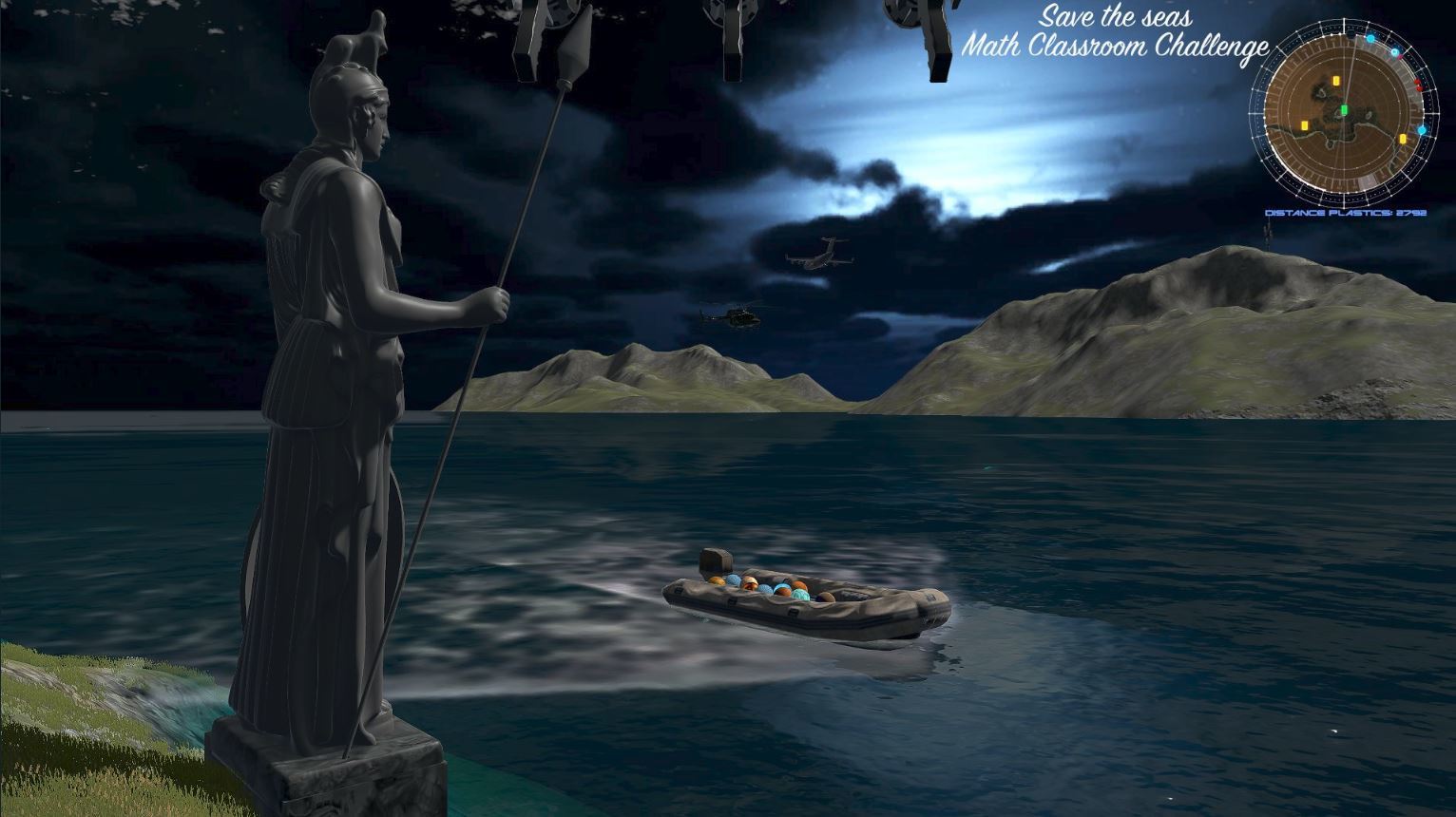 Playing “Save the seas” is easy, but it’s important to know the key commands to operate the helo and the drone. Both use the same buttons.We recommend reading the basic manual and videotutorial at mathclassroomchallenge.com.