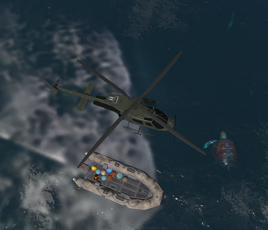 Important: practice your skills with the helo first. Free flight while you learn to control the helo is important. In fact you can enjoy the view of the seas just flying with the helo.