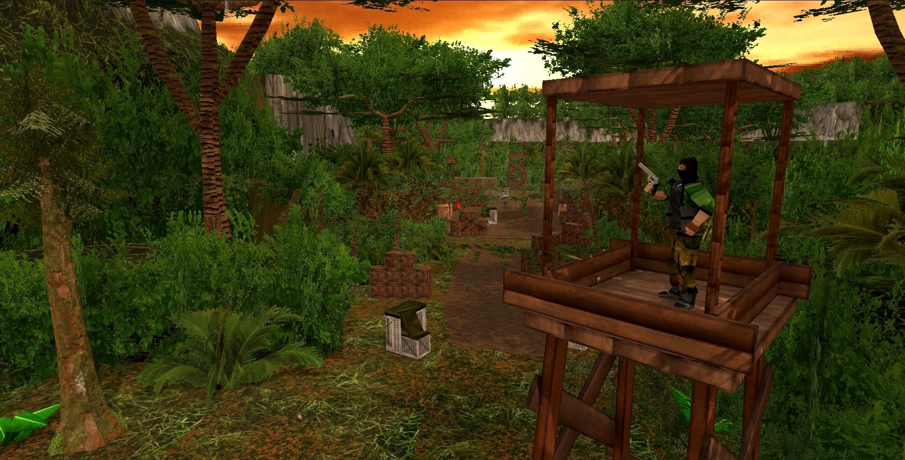 The Jungle Scene has been completely overhauled with foliage, destructible buildings, guard towers, and even enemy tanks.