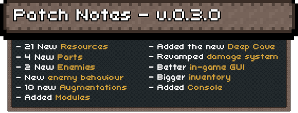 Please note that almost all the new content and changes will solely be in Survival Mode and Creative Mode, meaning that Story Mode will almost be the exact same as it was before v.0.3.0. We plan on adding all the new content to Story Mode in a later patch.