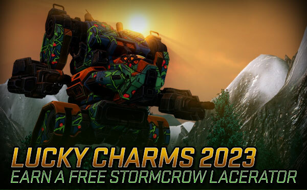 Welcome to the Lucky Charms 2023 Event! This year's lucky Charms will be all about getting the Loot bags filled with c-bills, cockpit items, and more! Earn a 30,000 Match score and Unlock the Stormcrow Lacerator!