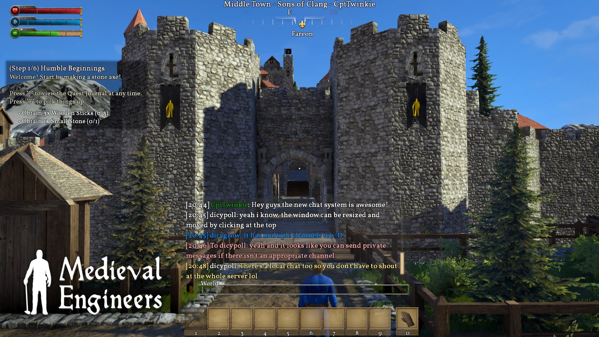Medieval history has countless examples of conflict and war. For this reason, combat has always been part of the plan for Medieval Engineers. So for 0.6.4 we have overhauled the combat mechanics entirely to make the combat feel more alive and exciting, and to provide more interesting fights. Additionally, we have overhauled the resource balance, updated the HUD for readability, implemented a new chat system, and many quality of life improvements. There's bound to be something for everyone in this patch!