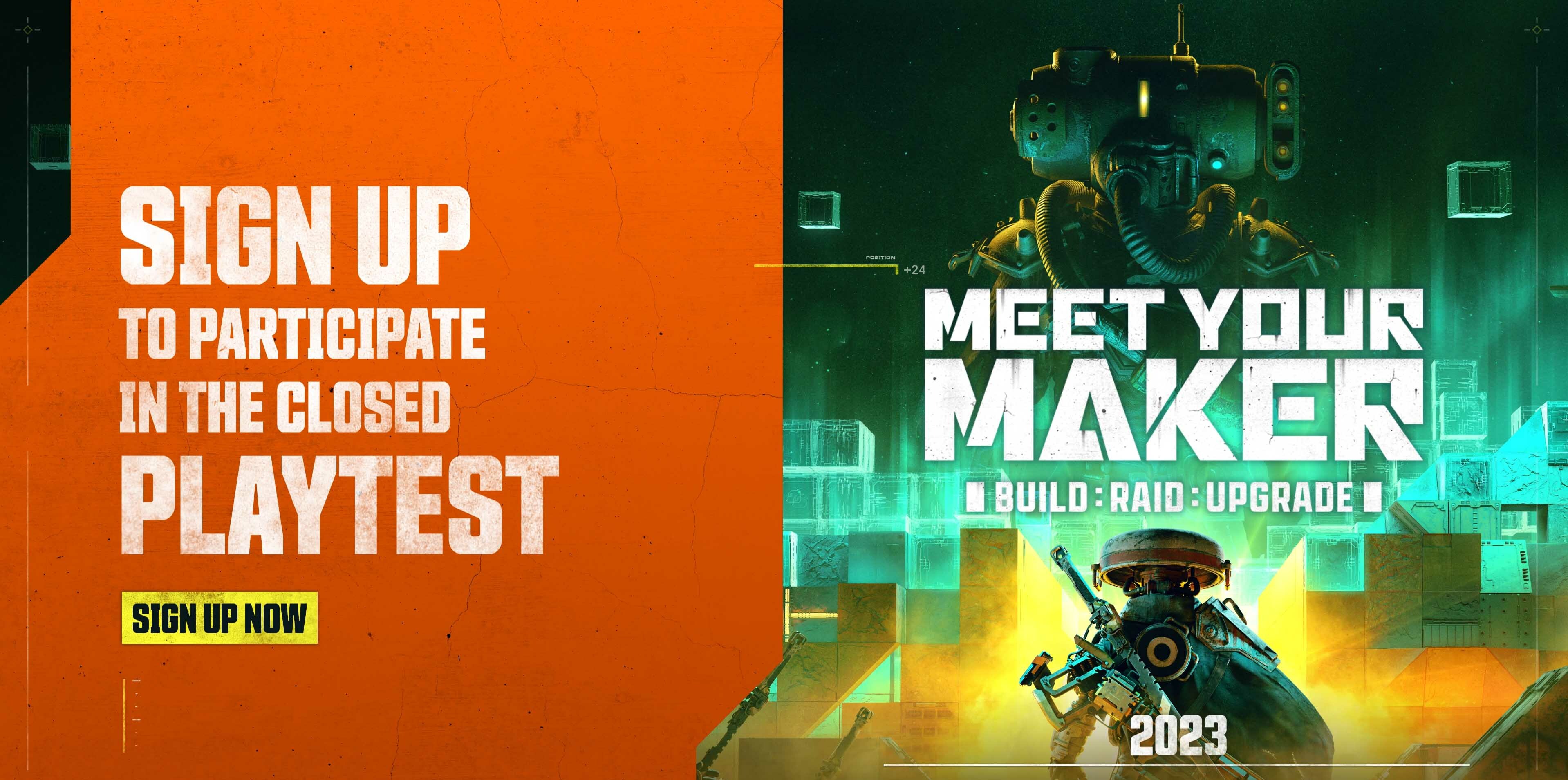 The Meet Your Maker Beta Playtest will be held in Winter 2023 (exact dates TBA), and will accept all players who register, with no NDAs required. Sign up now for your last chance to play before launch, Custodians!