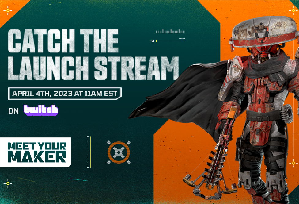 Join us for the Meet Your Maker's launch livestream on April 4th at 11:00AM EDT! Watch as our game designers raid deadly outposts and get rewarded with game keys for tuning in. You will also be able to hear about the post-launch roadmap and all the content we have planned for the game!