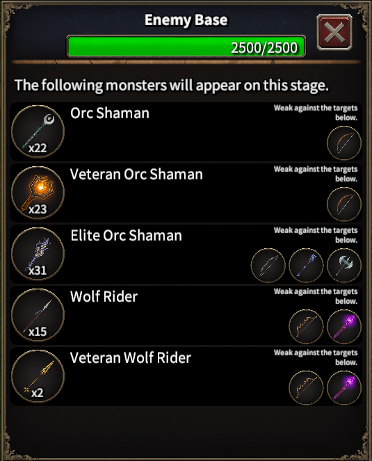 Clicking the enemy camp now shows a summary of the Wave information that appears on the stage.