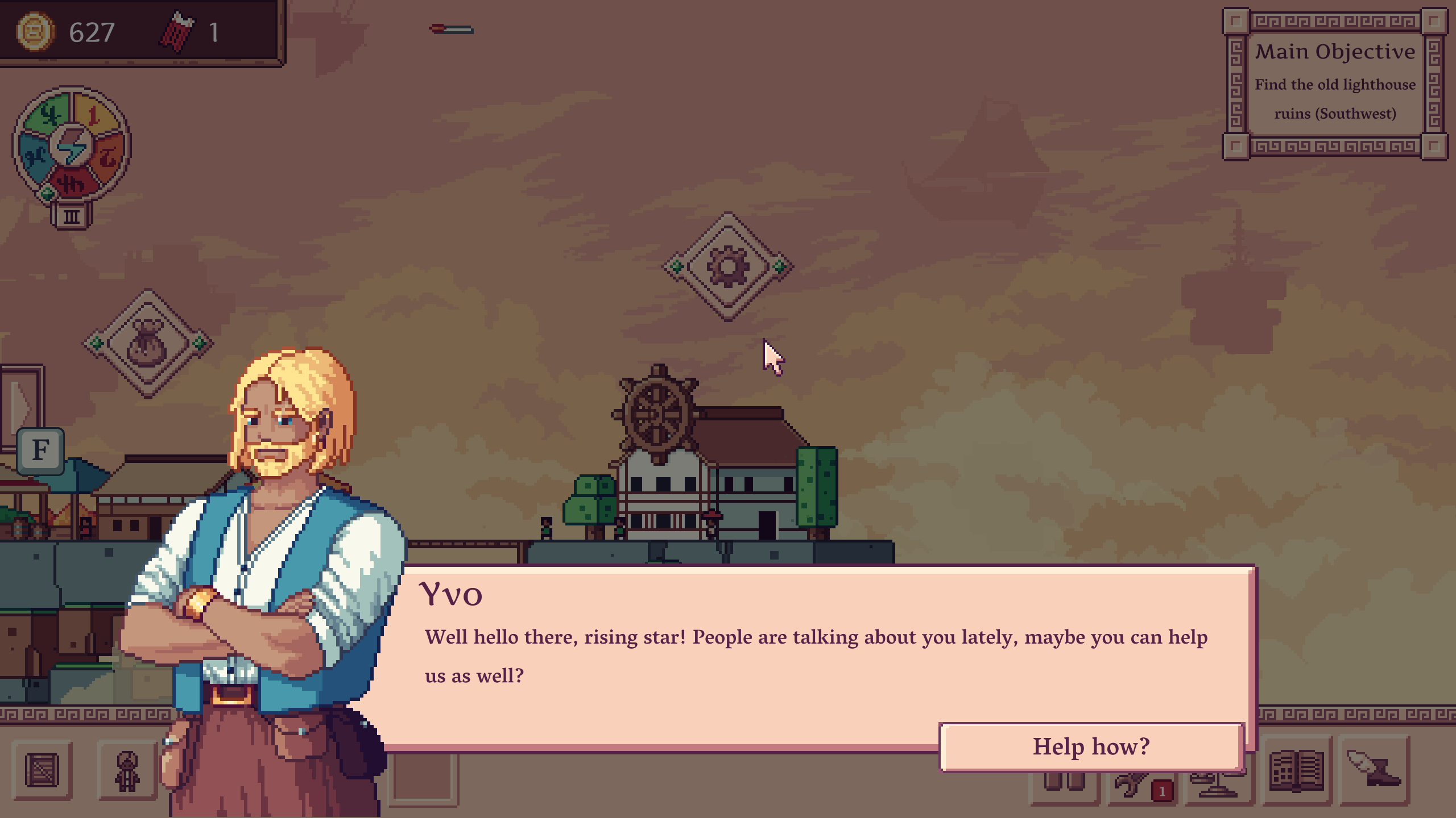 We've spent this week on adding more quests and characters, one of them with the following guy below! Meet Yvo, master at the ship workshop, you will definitely meet him in the skies of Fieri archipelago.