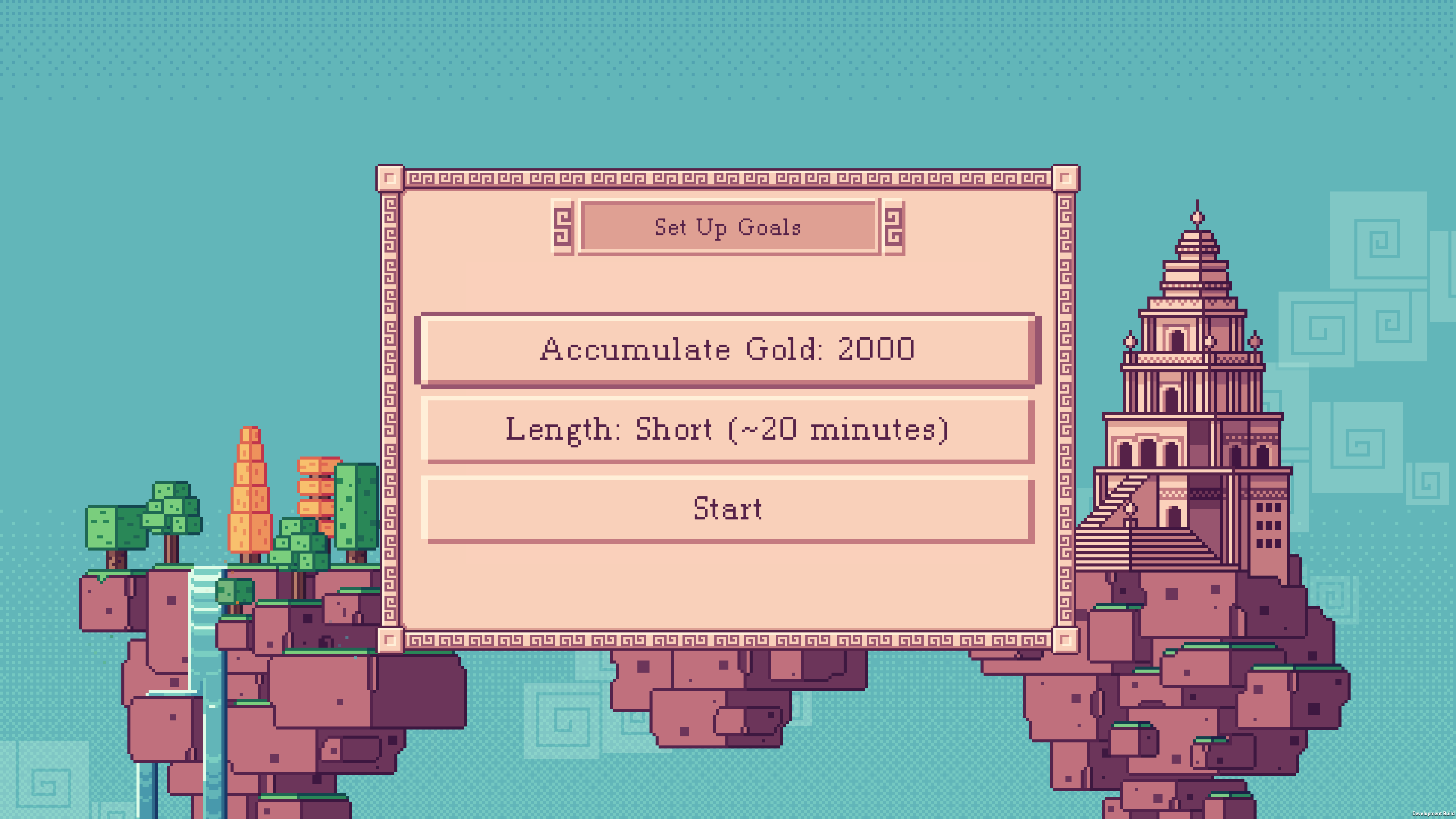 1) When you start a new game, you can pick an objective that you want to reach. This is going to be your winning condition. You can choose "no objectives" too for the infinite mode, but I like it when there are global goals. These will give you a purpose and alter your gameplay strategies over the gaming sessions. The goals vary by length which you can often customize (right now the estimates shall be about 20 / 40 / 60 / 90 minutes) - these estimates should give you an idea of how long the game can take. Of course it mostly depends on how you play the game, there is no hard limit as we want the game to feel relaxing :)