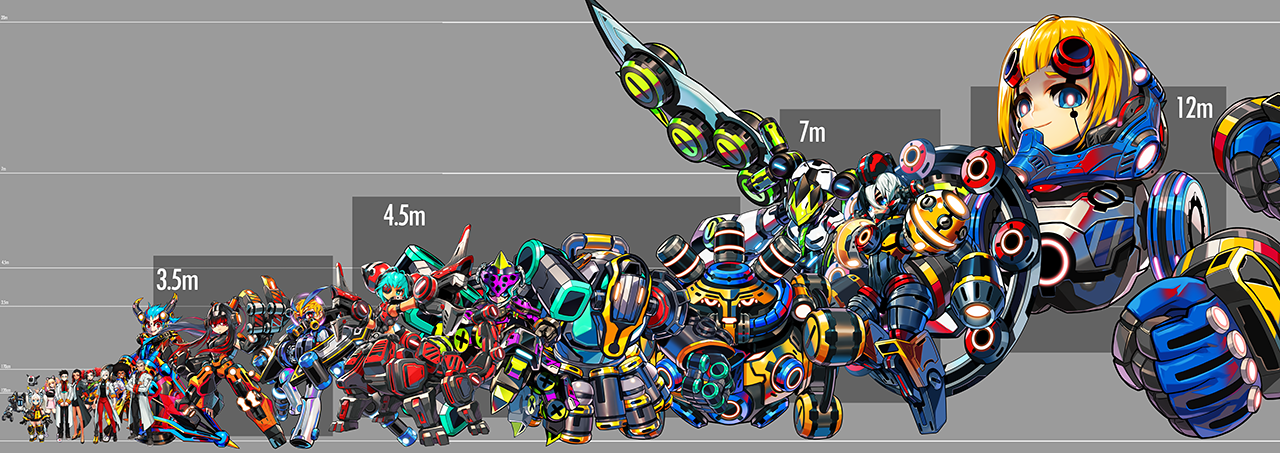A sneak peek at some of the machines that Rona will be handling! Once you board this guy, the battle scene will turn into a riot. Rampage around with these skreaking arms, and once you come back to your senses, you’ll be covered in oil, and surrounded by a load of shattered parts and the smell of gunpowder… Oh please, do have some consideration for the janitor.