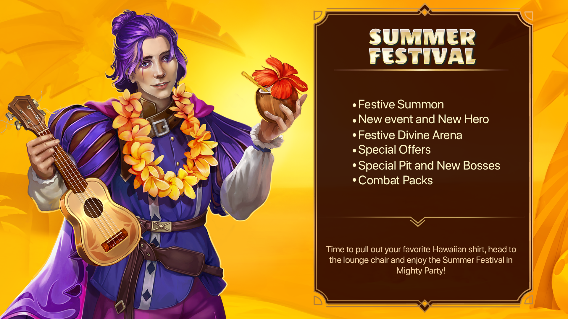Time to pull out your favorite shorts and shirt, head to the lounge chair and enjoy the Summer Festival in Mighty Party!