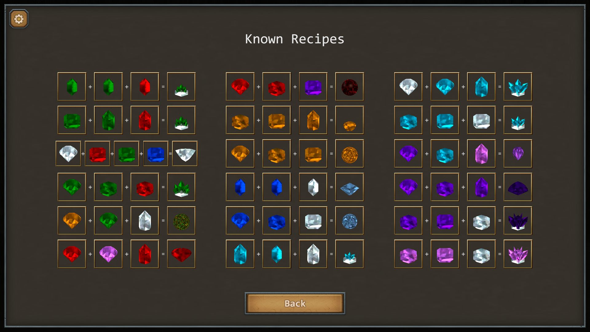 Right now it will display all known gem combine recipes. More additions will be coming to this area with time.