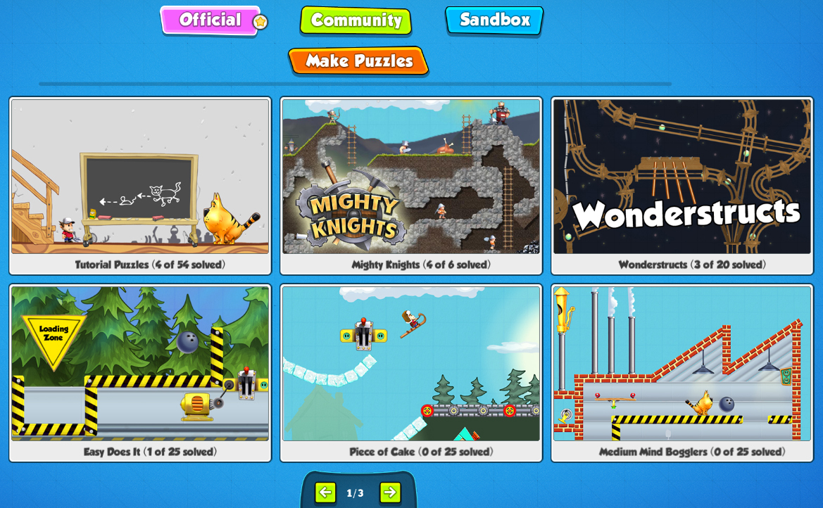 There is a new puzzle pack on the way for Contraption Maker with 161 new puzzles based upon the original puzzles in The Incredible Machine. Wanted to get it out in September - may be out this month - will be out by Christmas at the latest. My son is working on it. I need to go through it very carefully and verify that everything looks good.