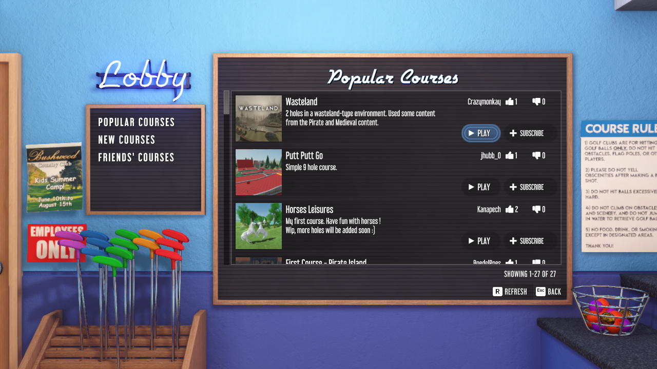 Winter Course Overhaul - Continuing overhauling the standard courses into full 18 hole courses.