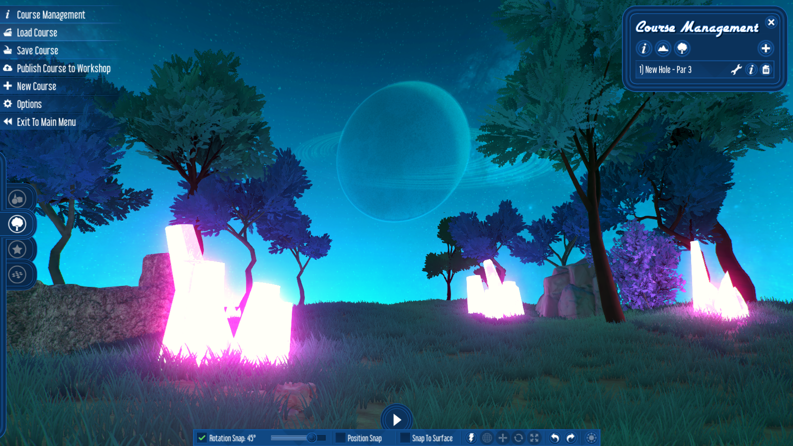 Workshop - I have also not had much time to build courses to be available on the workshop the day of the release. As an aside, instead of doing a single 9-hole course, I will be doing several shorter (3 - 4 hole) courses that each showcase a single environment.