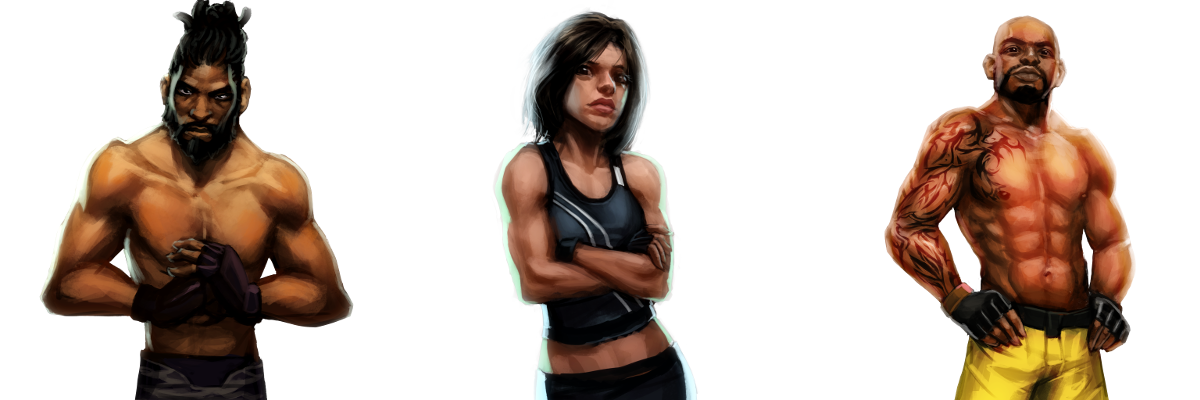 I hired an artist to replace all of the portraits with more stylized fighters. I really like the new look, and it gives the game a unique style that works way better than trying to look realistic like before.