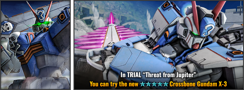 ■Battle Simulator ◎Battle Simulator missions are updated! ⇒ In TRIAL “Threat from Jupiter”, you can test out the new unit “Crossbone Gundam X-3”.