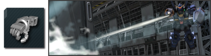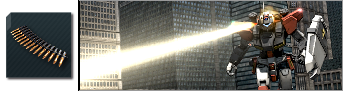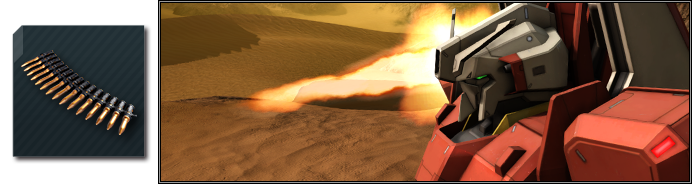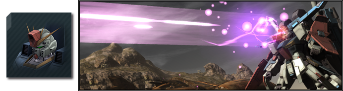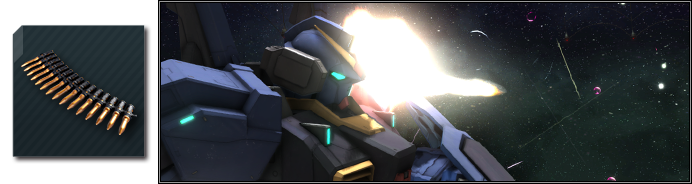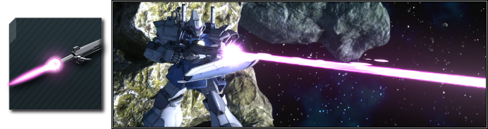 Sub-weapon “G-BRD [Discharge]” ・G-BRD for use as a sub weapon, offering long suppression, capable of piercing MS, and negating any special buffer damage reduction effects of enemy MS. Must stop to fire, but discharge deals continuous damage while the Attack button is pressed. If the attack is stopped or used for a certain period of time, the weapon will be overheated.