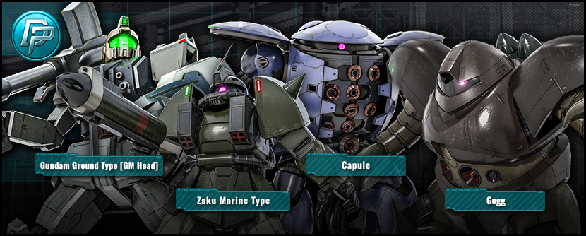 ■New Materials for exchange are added to DP exchange Counter. ⇒ Information about newly added materials ■Units ・★★ Gundam Ground Type [GM Head] LV1 added ・★★ Capule LV4 added ・★ Gogg LV4 added ・★ Zaku Marine Type LV4 added