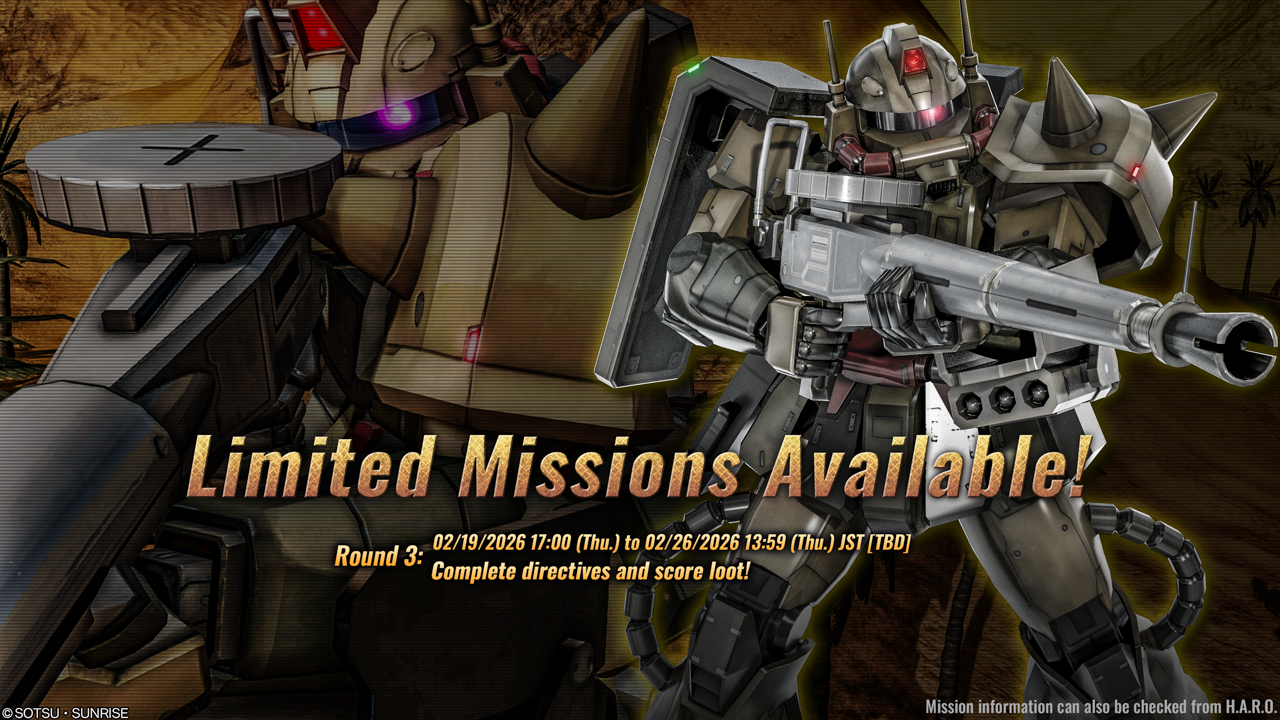 ◎[PST] 02/20/2026 12:00 – 02/28/2026 11:59 ◎[CET] 02/20/2026 21:00 – 02/28/2026 20:59 ・List of items you can get MS: ★★ Gundam Ez8 [HMC] LV1 Others: [★] – [★★★] Modification kits, Hanger usage permission <At the end of the month>, DP, Token ※When you acquire the Hangar usage permission, the dedicated hangar of the reinforcement facility will be opened. ※Hangars have early, mid, and late slots, and each of these slots will be opened in the duration in which the permission to use the hangar is acquired. ※All hangars opened by the usage right will become unavailable at the end of the month in which the usage rights are acquired ([PST] 11:59 / [CET] 20:59 on the day). (If the end of the month arrives in the middle of storing the MS, it will be unavailable after the MS enhancement is completed.)