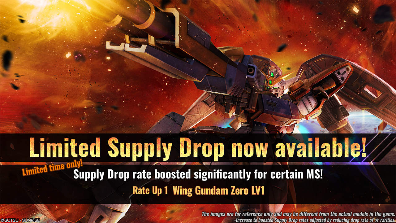 ■Contents During the period, “Limited Supply Drop (Once / 10 Times)” can be requested from the material counter. During the Limited Supply Drop, Wing Gundam Zero’s drop rate will be increased.