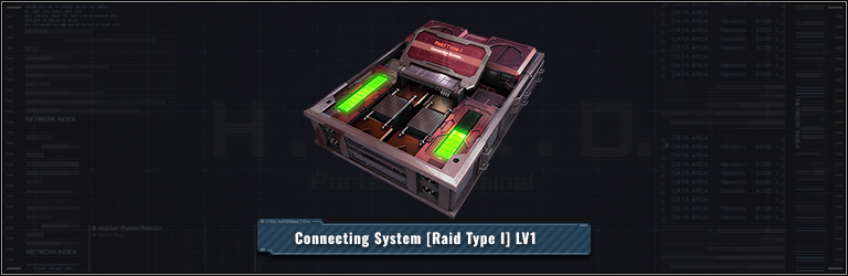 ■Custom part Connecting System [Raid Type I] LV1 Spec: Increases Melee strength and Melee resistance by 10. Speed will increase by 7 when equipped to Raid category. Multiple custom parts of the same type cannot be equipped at once.