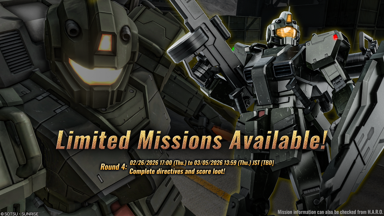 ※Unlike daily missions, you don’t have to complete all of them in one day. The achievement status will be carried over to the next day during the period. ※The details of the missions and their achievement status can be found in the “Missions”→ “Limited” under the H.A.R.O. menu. ※Rewards can be gained in the Rewards Center.