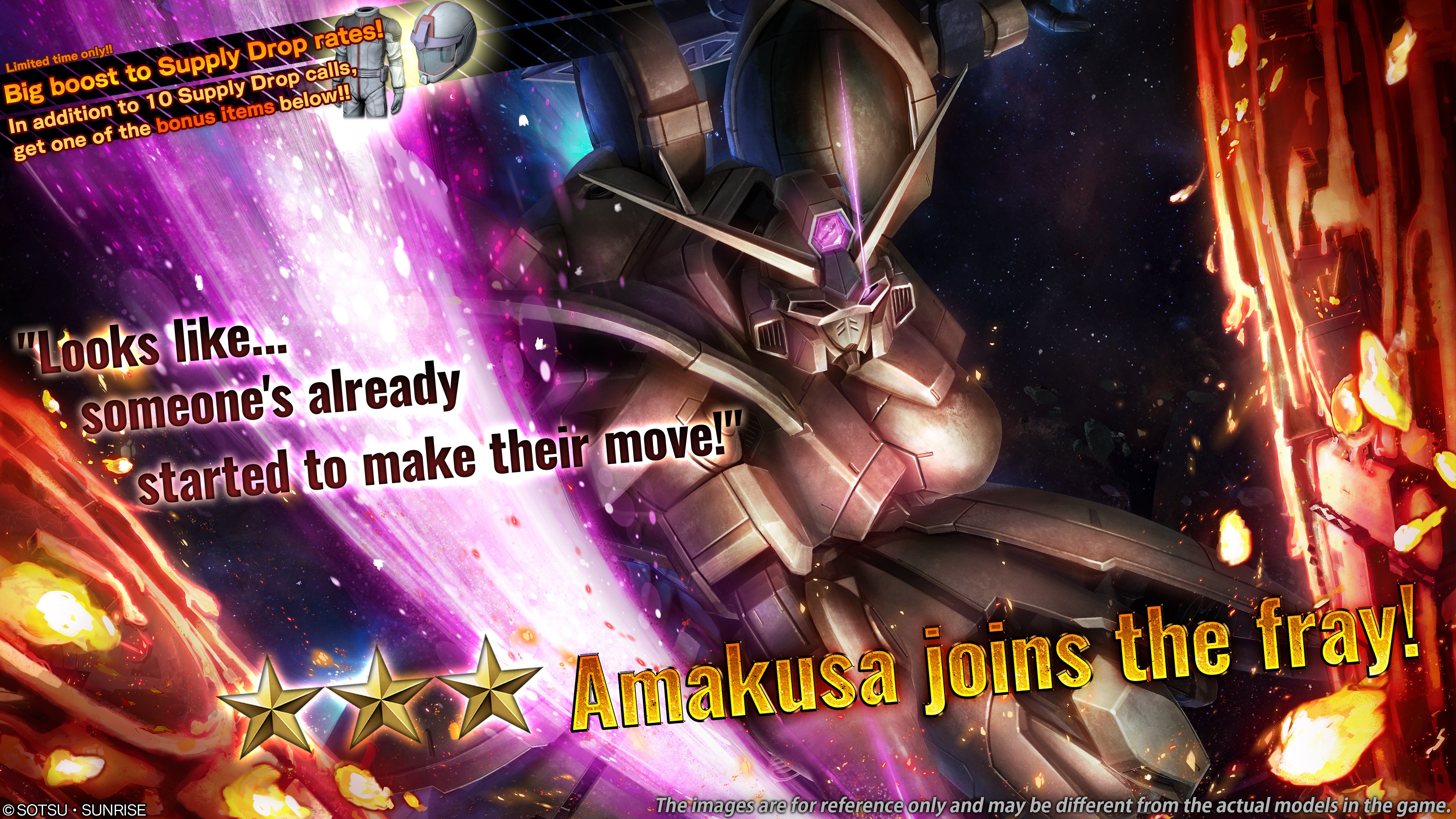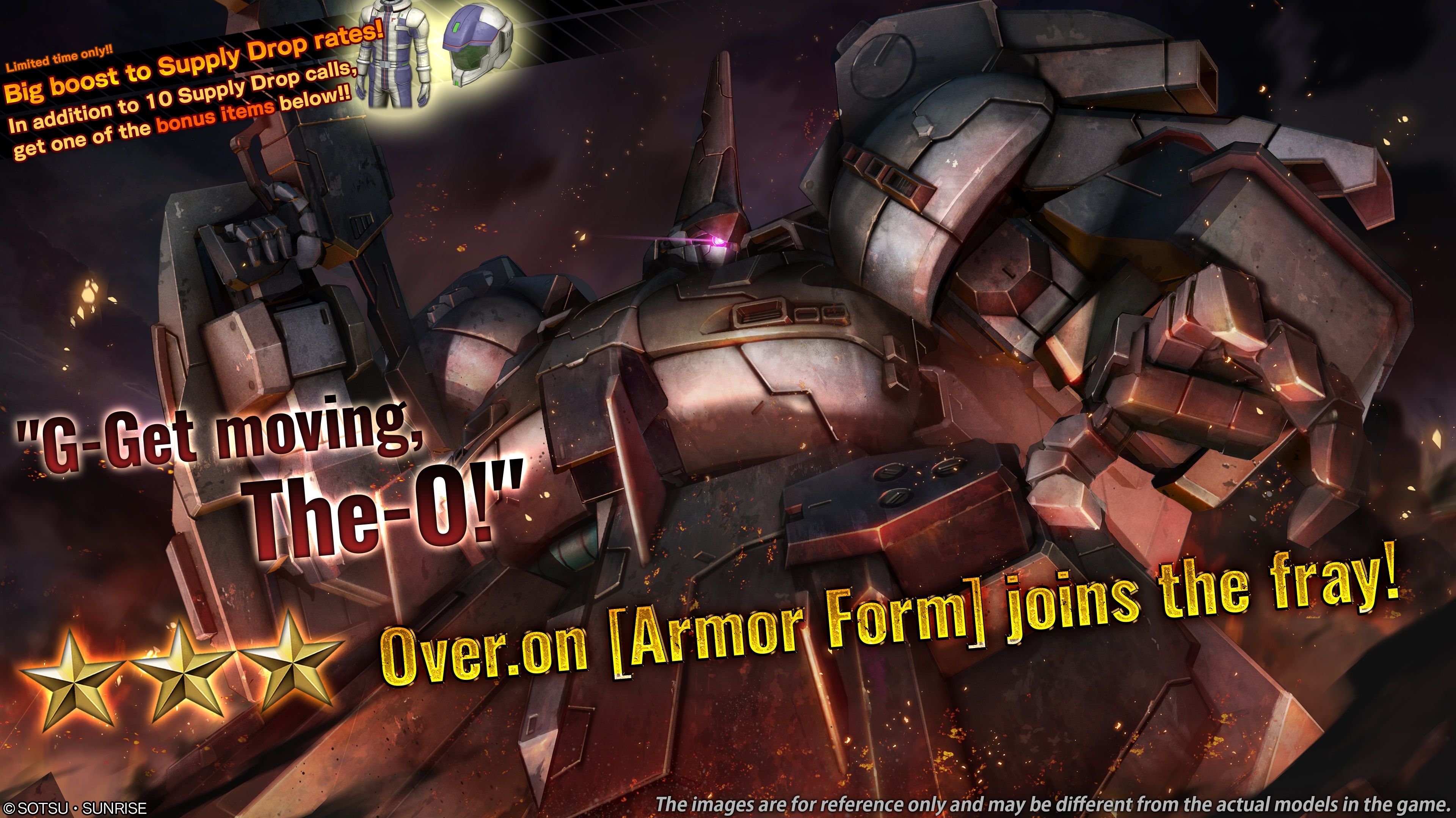 ■Notice of [Big Boost to Supply Drop Rates Campaign] Some of the newly added materials will have a boost to their supply drop rates for a limited time. ■Period [PDT] 07/24/2025 01:00 – 07/30/2025 21:30 [Scheduled] [CEST] 07/24/2025 10:00 – 07/31/2025 06:30 [Scheduled] ■Featured material that will benefit from the Big Boost to its Supply Rate ・★★★ Over.on [Armor Form] LV1 (Raid unit, ground/space uses, cost: 600) ■Supply Drops that will benefit from Big Boost to Supply Rates ・Normal Supply Drop ・STEP UP Supply Drop (not including COST 750 guaranteed STEP UP Supply Drop) ※After the end of the campaign, all supply drop rates will be the same as other materials.
