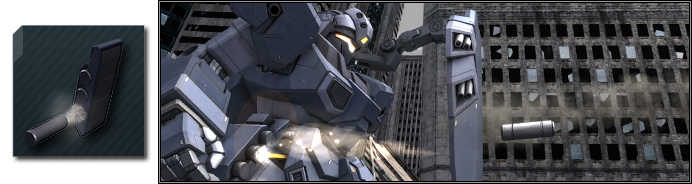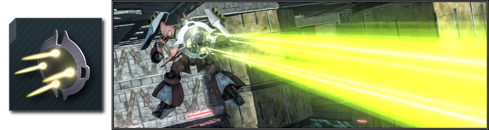 Sub-weapon “X-3 I-Field Generator” ・Temporarily generates an arm I-Field, which reduces HP damage from beam attacks and reduces or nullifies reactions. Reactions from cumulative beam attacks are reduced as well. ・If this weapon is selected while its arm I-Field is activated, and ranged beam attacks are taken from the front, cumulative damage reactions from those attacks are nullified. ・Also compatible with the Max Output (T) skill, extending the weapon’s effect time during max output. ・However, changing to melee and exiting during a tackle will cause the I-Field to vanish, resulting in overheating.