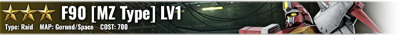 ■Added New Materials ■Unit ・★★★ F90 Type I [Jupiter Battle] LV1-2 (General unit, ground/space uses, cost: 700+) ※The above MS is eligible for the Monthly MS Bonus Unit.