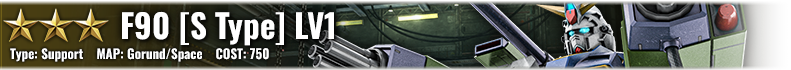 ■Mobile Suit Features ・General unit with cost of 700. ・The F90 was originally developed under the Formula Project and equipped with a Type I Mission Pack and has been upgraded with the latest technology. ・After the Jupiter War, the leader of the new Jupiter Empire launched “Operation Divine Thunder”, and tried to fire an ultra-long-range colony laser at Earth from the Jupiter Sphere. This unit was used in “Operation Steel 7” to counter that attack. The F90 Type I was upgraded with UC 0136 technology, with an overall performance rivaling that of cutting-edge mobile suits. ・Its armaments include a Shot Lancer, Beam Saber, Beam Rifle, and various missiles. It carries numerous weapons specialized for close-to-medium range combat and excels at hit-and-run tactics utilizing the “Flight Shield Attack” skill. ・Can be deployed both on the Ground and in Space. https://bo2.ggame.jp/images/info/2025/12/0d73e3fe6b3babaec9b917b1b6dfa7e1.mp4