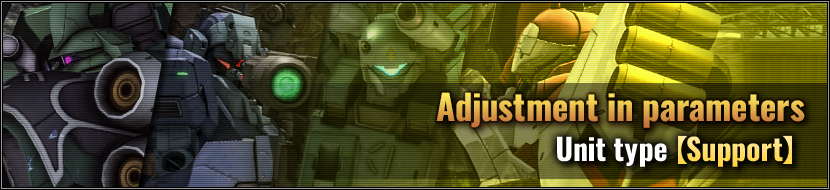 Spec ・Unit Skill “Frontline Support System LV3” has been given ・Unit skill “Scouting Parallel Processing Device LV1” is adjusted to “LV2” ・Unit skill “Stabilization Device LV1” is adjusted to “LV2” Sub-weapon: [Type B] Waist-Mounted Grenade ・Power is increased as “700” → “800”(Upper LVs are also enhanced) ・Reload is shortened as “12.0” → “10.0” Sub-weapon: [Type B] Twin Missile Launcher x2 ・Reload is shortened as “10.0” → “8.0” Sub-weapon: Mega Beam Launcher ・Power is increased as “1100” → “1200”(Upper LVs are also enhanced) ・Heat Rate is reduced as “95%” → “80%” ・Weapon switching time is shortened Rapid Sniping: ・Increased power ・Hit detection has been expanded and easier to hit the target ・Added an effect that temporarily reduces the movement speed of hit enemy units